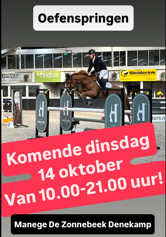 14 oktober 2025 is er oefenspringen bij Manege De Zonnebeek als voorloper van Euregio Indoor Denekamp. Je hoeft hier geen startkaart voor